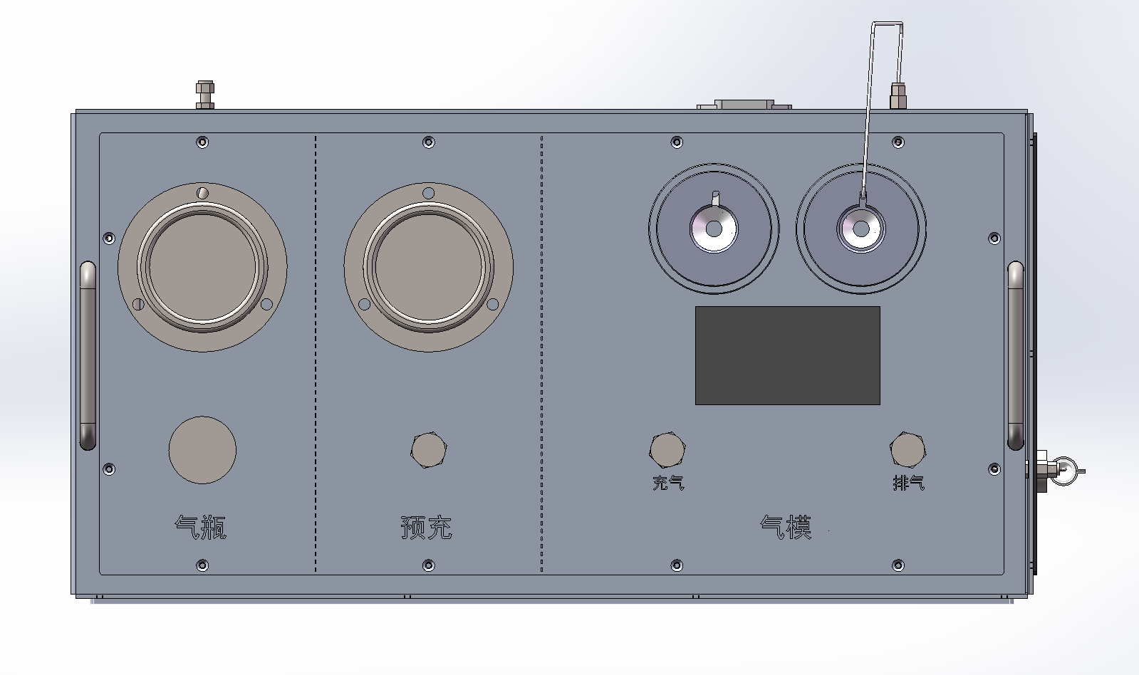 内置500ml高压气瓶,最高压力20MPa。外置接口规格:气体引入1/8NPT、气体输出1/16NPT。